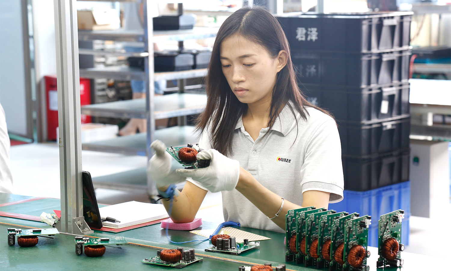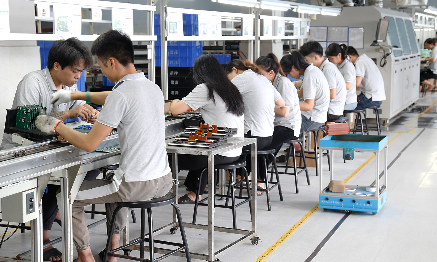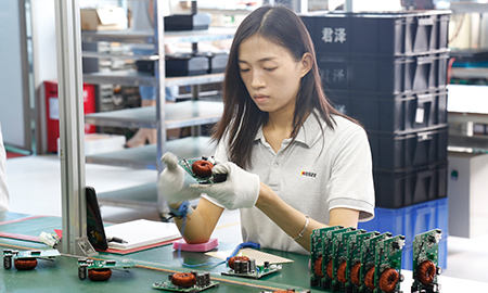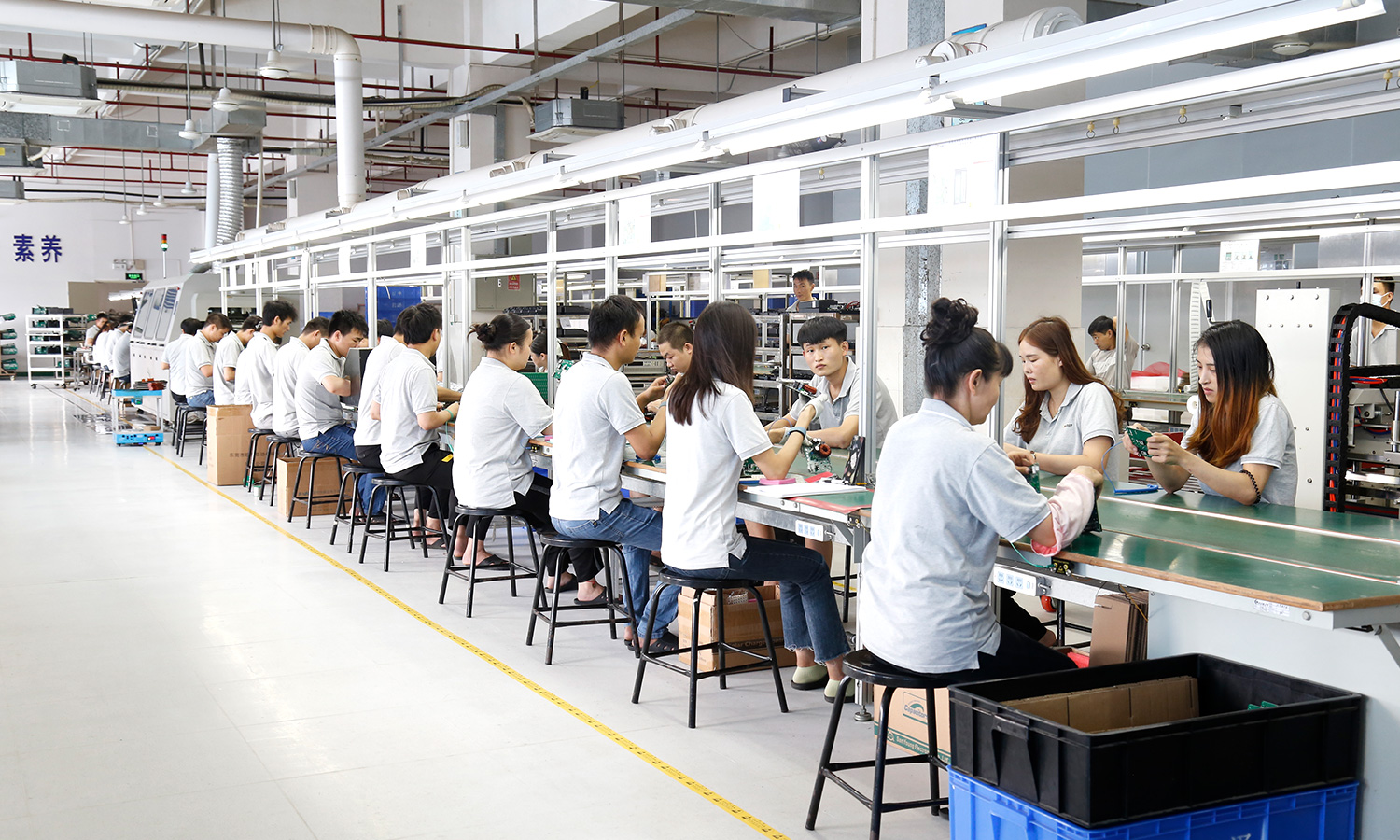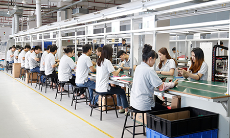 现有组装流水线2条现代化的生产线(可随时扩成4条),对太阳能控制器,逆变器,储能、开云手机入口、等工业产品组装经验丰富 ;能够生产绝大部分的数码电子产品,极强的综合生产能力,日产能达到1万PCS以上。防静电PVC空调车间,配备有老化房,测试房,成品测试隔音隔离房等,设备先进、完善,可进行各种产品镭雕、组装、老化、测试、包装等生产。