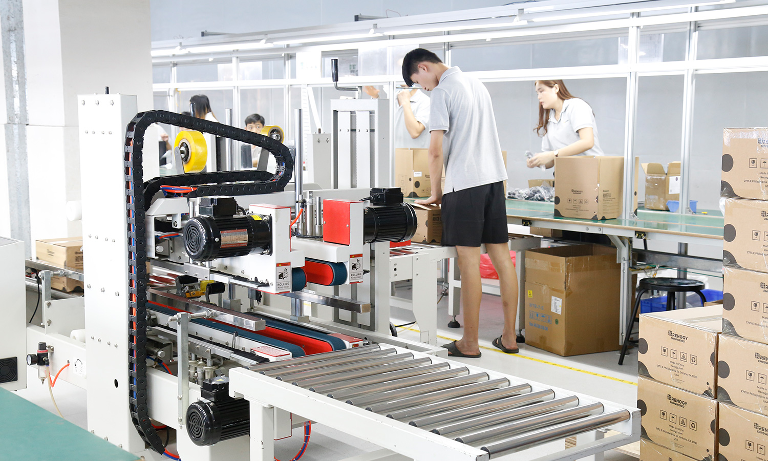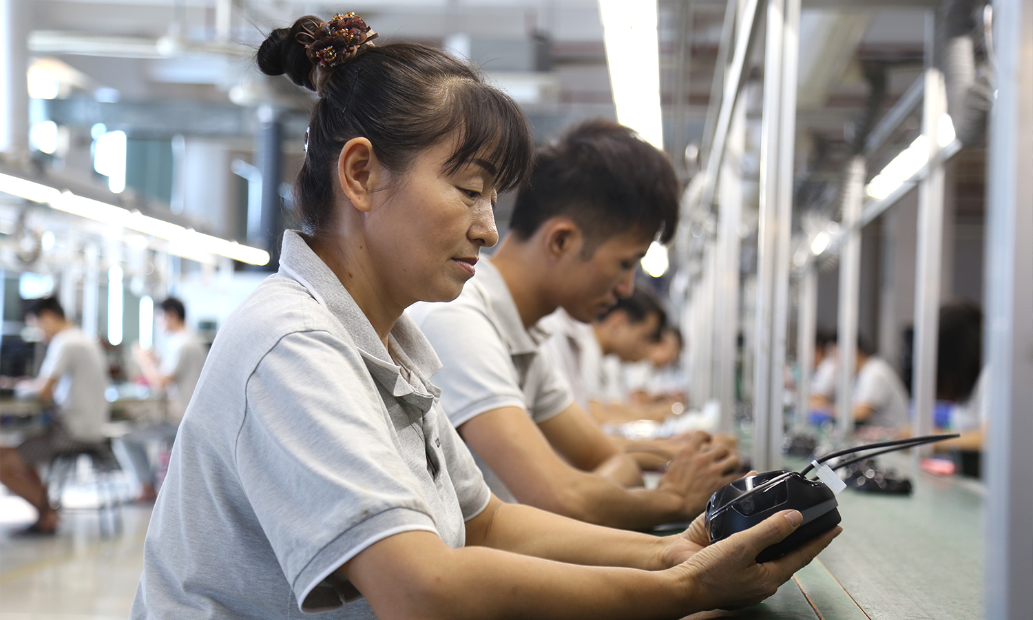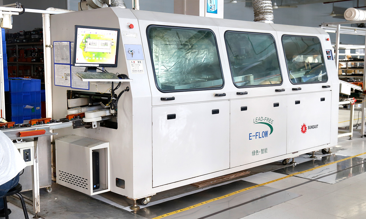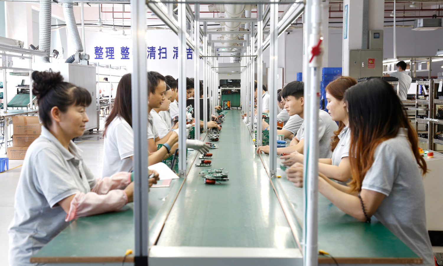 现有组装流水线2条现代化的生产线(可随时扩成4条),对太阳能控制器,逆变器,储能、开云手机入口、等工业产品组装经验丰富 ;能够生产绝大部分的数码电子产品,极强的综合生产能力,日产能达到1万PCS以上。防静电PVC空调车间,配备有老化房,测试房,成品测试隔音隔离房等,设备先进、完善,可进行各种产品镭雕、组装、老化、测试、包装等生产。